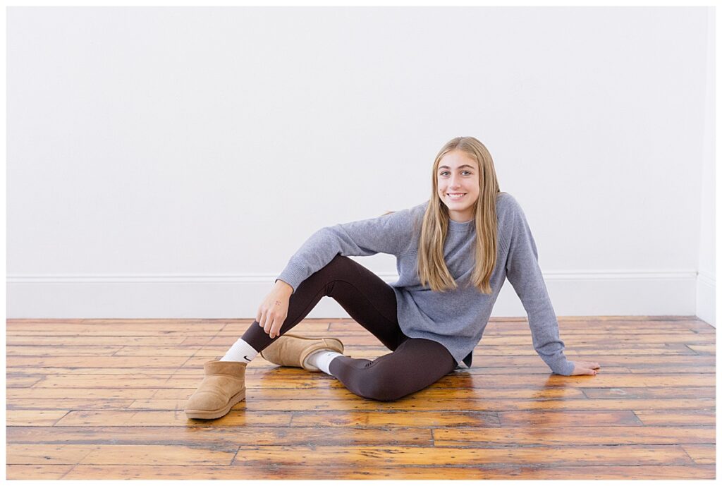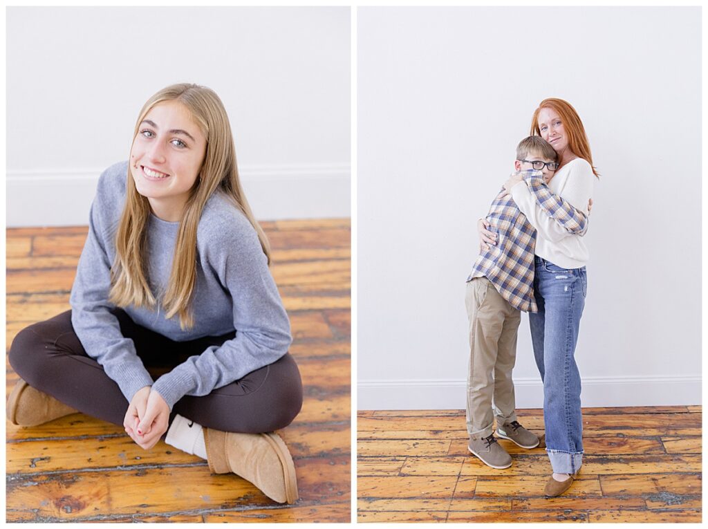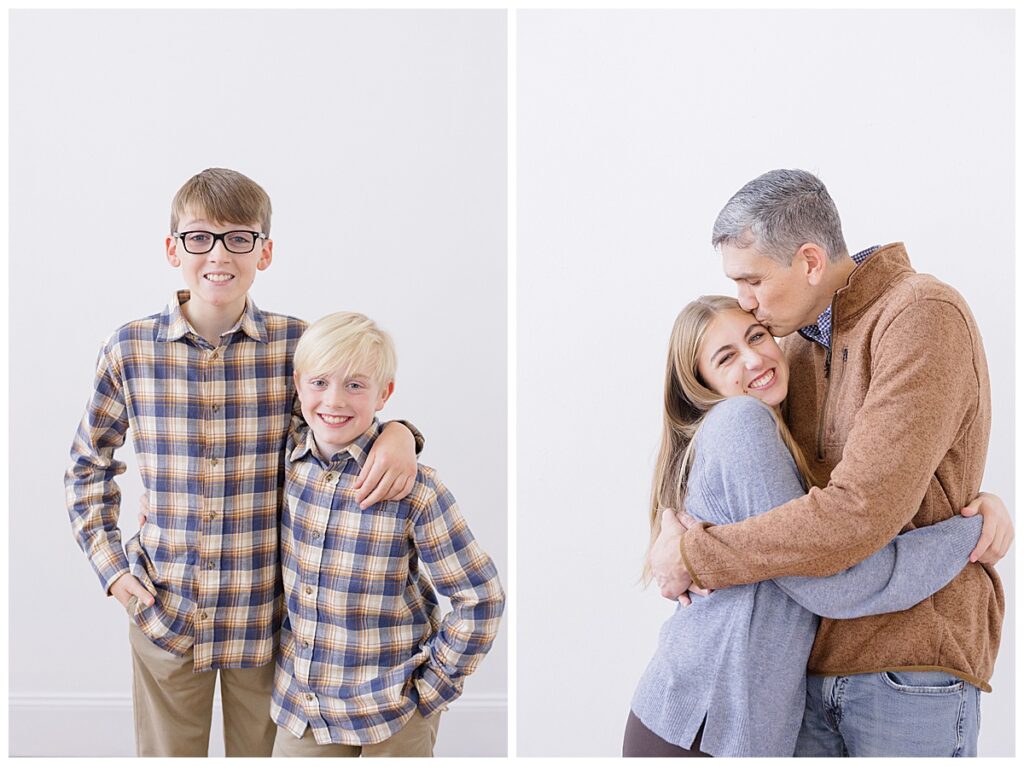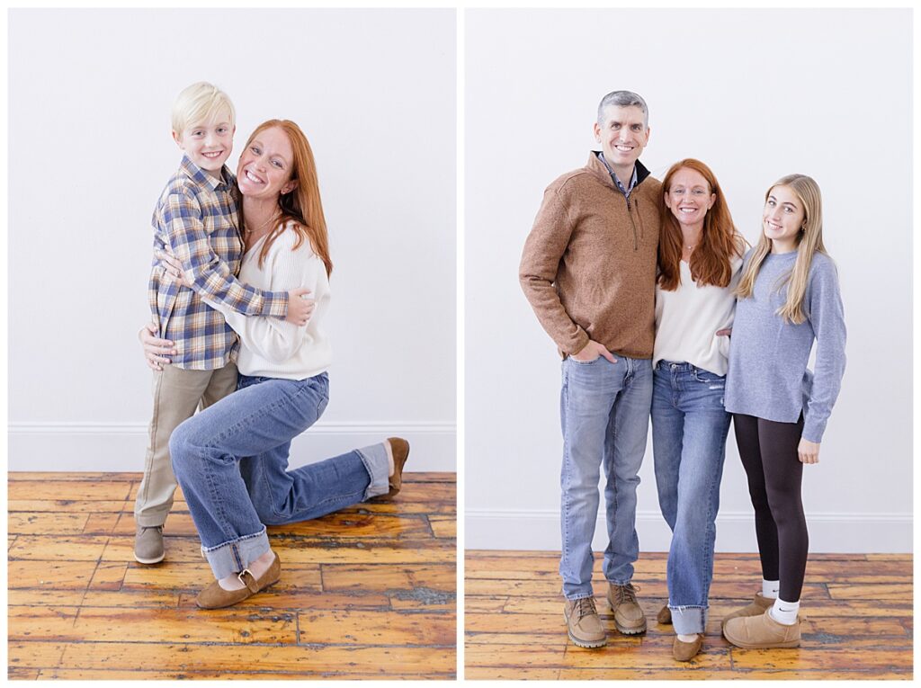 Their session focused on timeless, clean imagery paired with a subtle holiday setup. These are the kind of photos that never go out of style. The studio’s simple backdrop allowed their connection to take center stage, while the holiday touches added just the right amount of seasonal warmth and charm without feeling overwhelming.