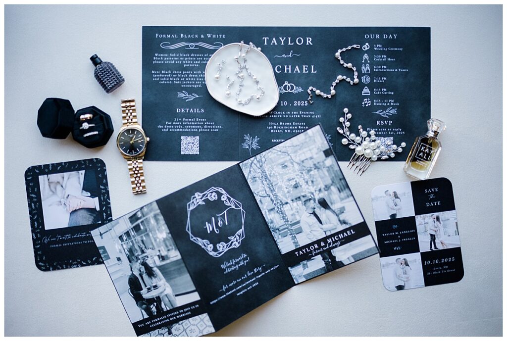 Mike and Taylor’s Hyla Brook Estate wedding in Derry, New Hampshire, was the perfect blend of timeless elegance and heartfelt emotion. The venue, known for its rustic charm and breathtaking New England scenery, looked absolutely stunning for their formal black-tie celebration. The classic style of their event paired beautifully with the estate’s refined atmosphere. Every detail came together seamlessly, creating a day that had both sophistication and was deeply personal.