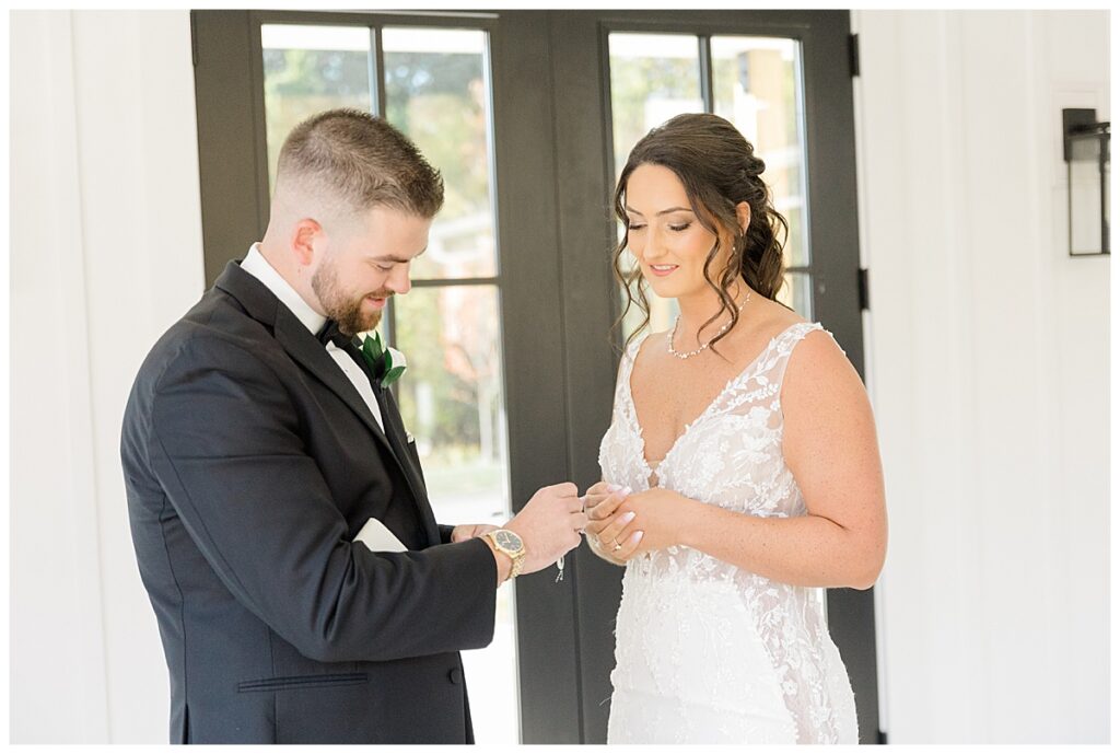 Shortly after, Taylor and Mike shared their own first look, and it was every bit as emotional. The moment Mike turned around and saw his bride, his face instantly lit up. You could feel the love and excitement between them. Before the ceremony, they took a few quiet moments together to exchange gifts and read private vows. Taylor surprised Mike with a Rolex watch, an unexpected and incredibly meaningful gift that left him speechless. Their reactions to one another were so genuine and sweet — full of love, gratitude, and anticipation for the day ahead.
