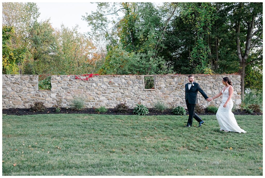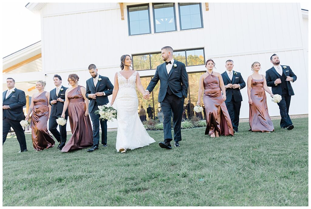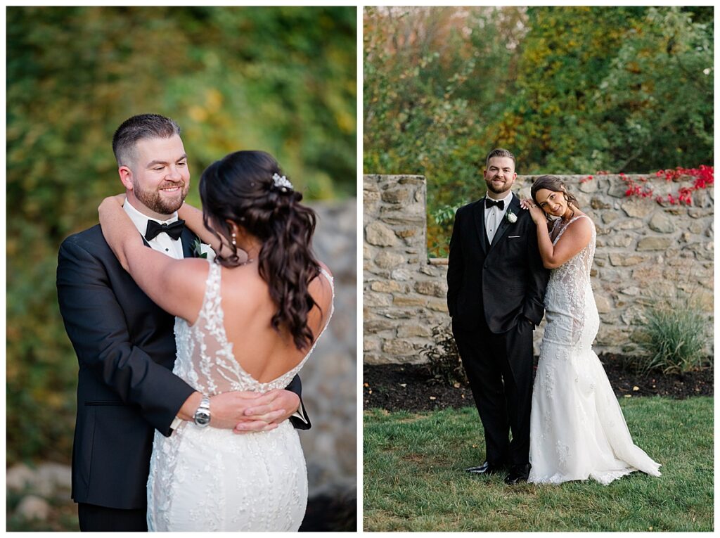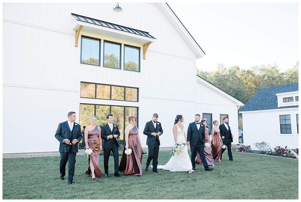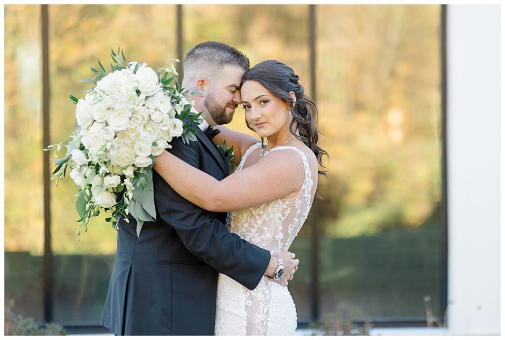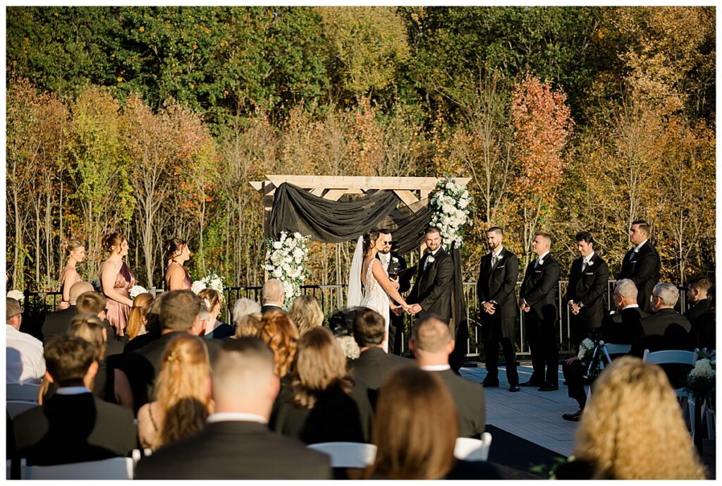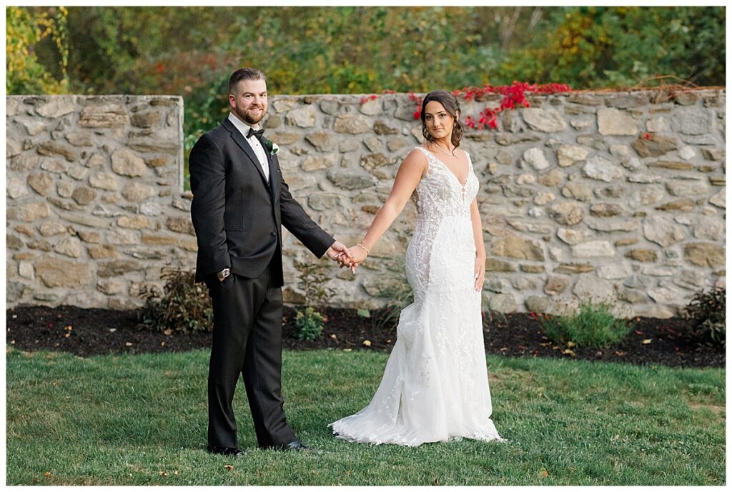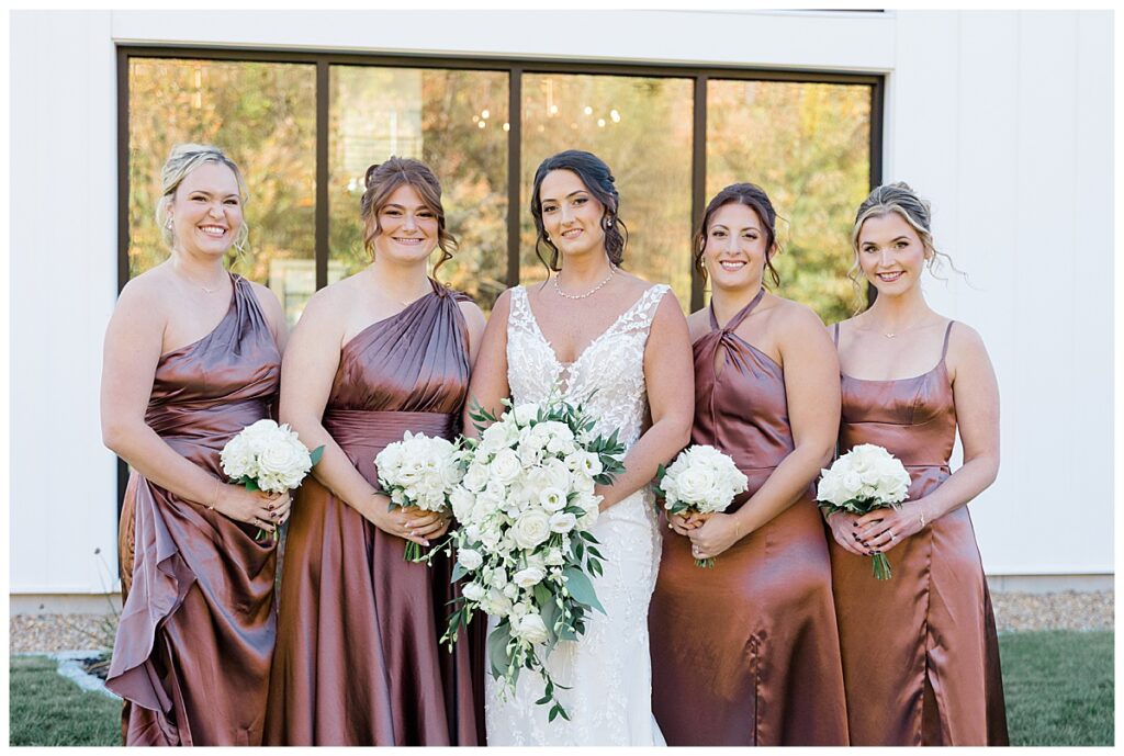 The fall day could not have been more perfect — crisp, clear, and surrounded by rich autumn color. The bridesmaids’ dresses were stunning! Their deep tones complemented the fiery reds, golds, and oranges of the foliage around the estate. Everywhere you looked, the scenery basically seemed to glow, making for the most dreamy backdrop to capture their love.